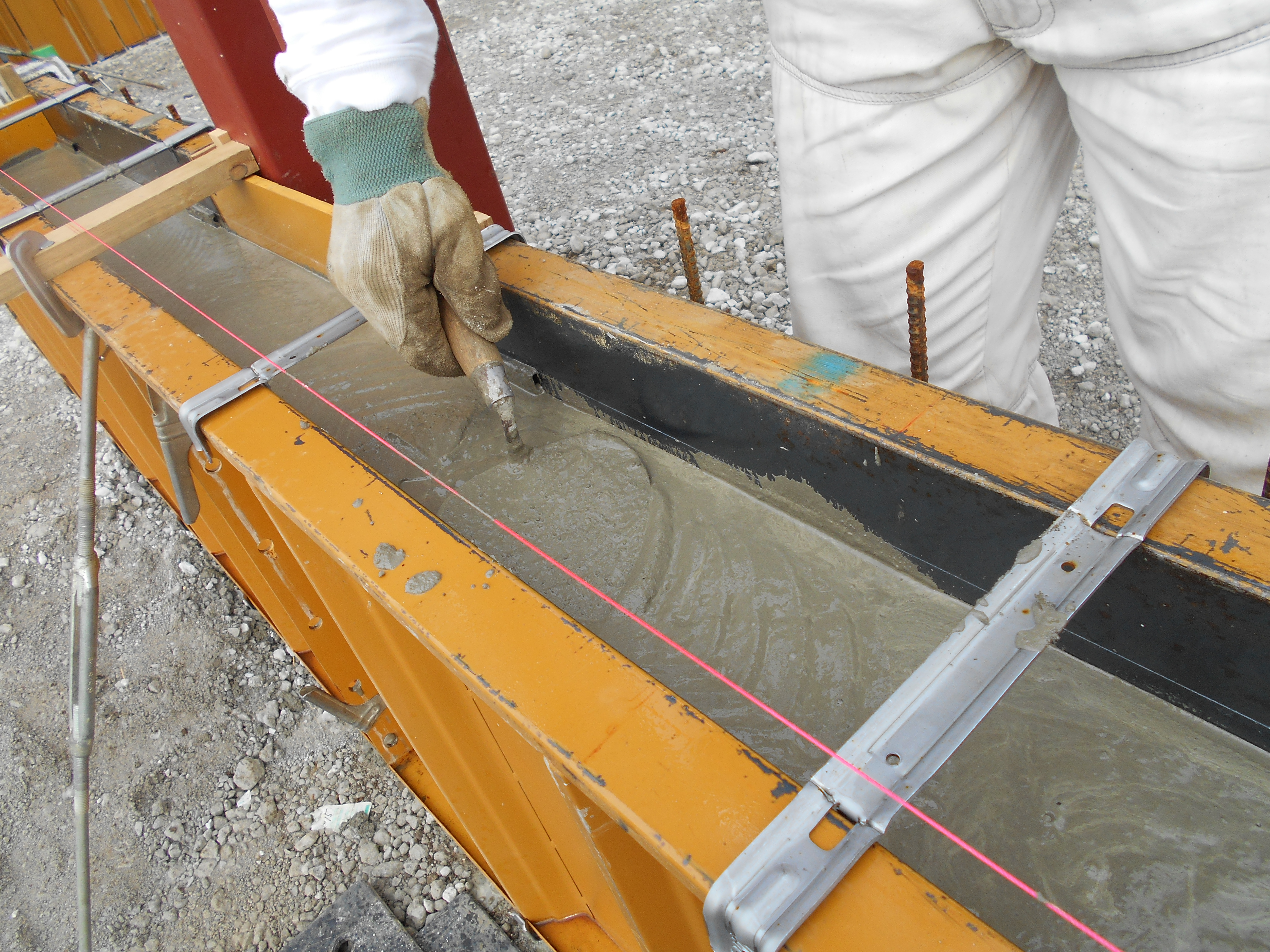 糸を張って、型枠の ”通り” を確認しながら打設します。
