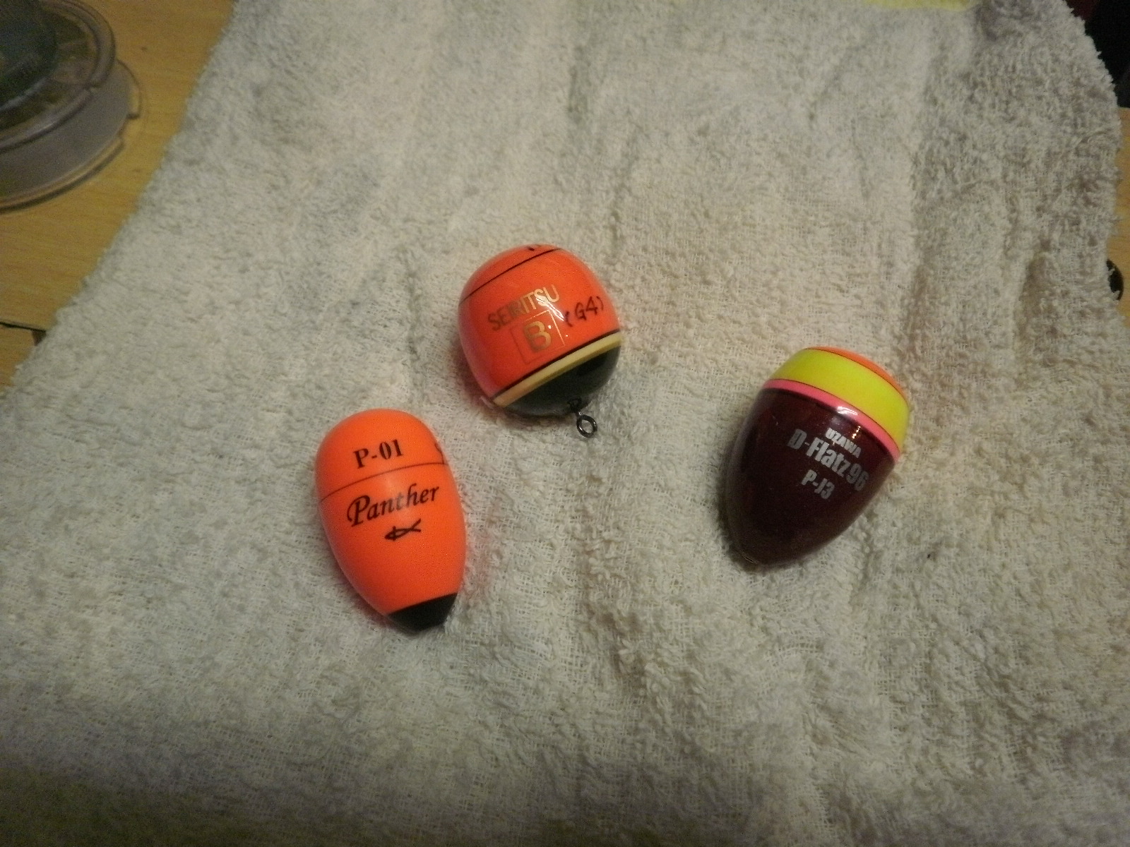 いつもはこの写真のような円錐ウキや環付ウキを使用しています。