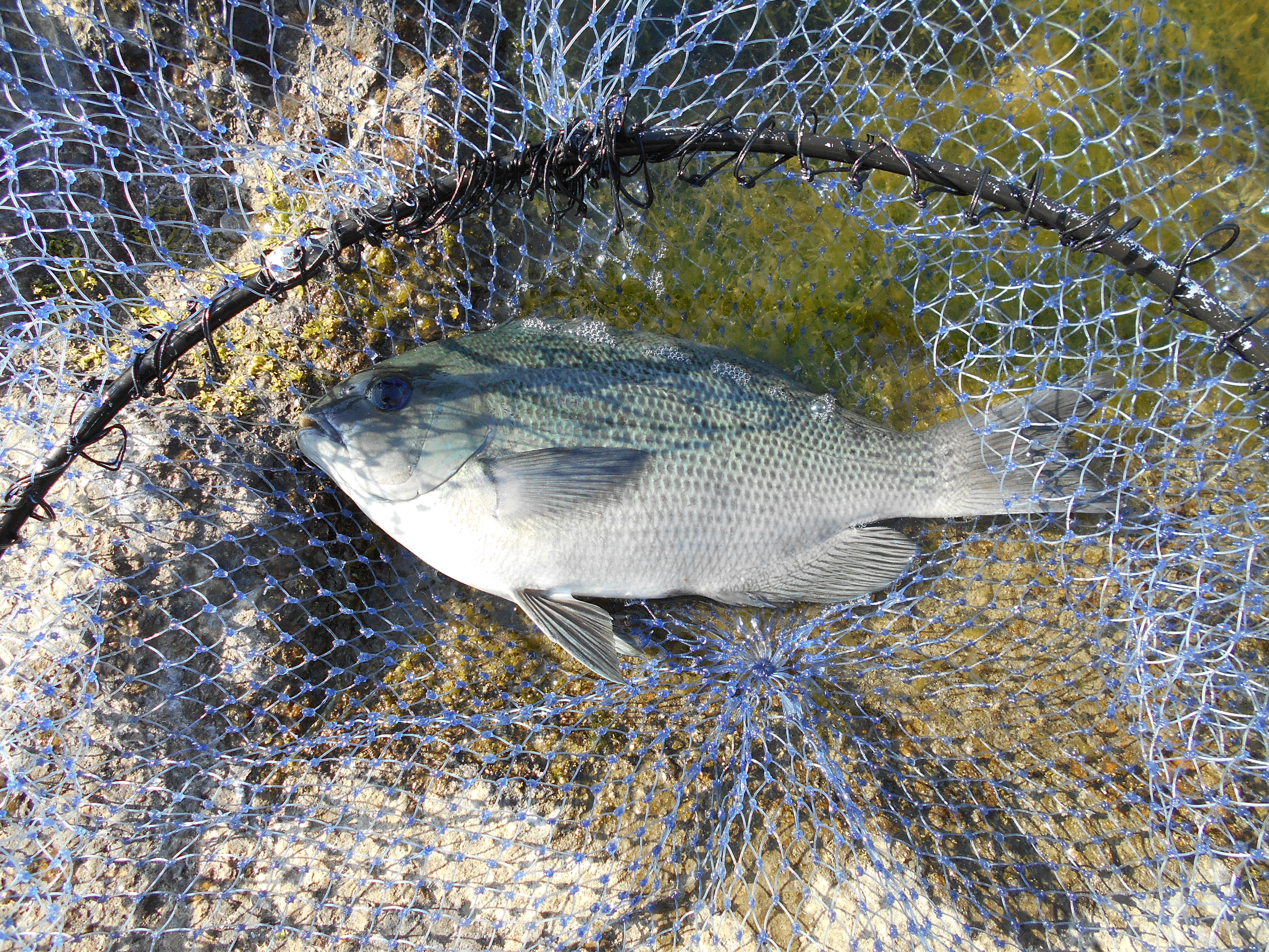 その後、同じ様なサイズの小メジナさんを2匹釣って