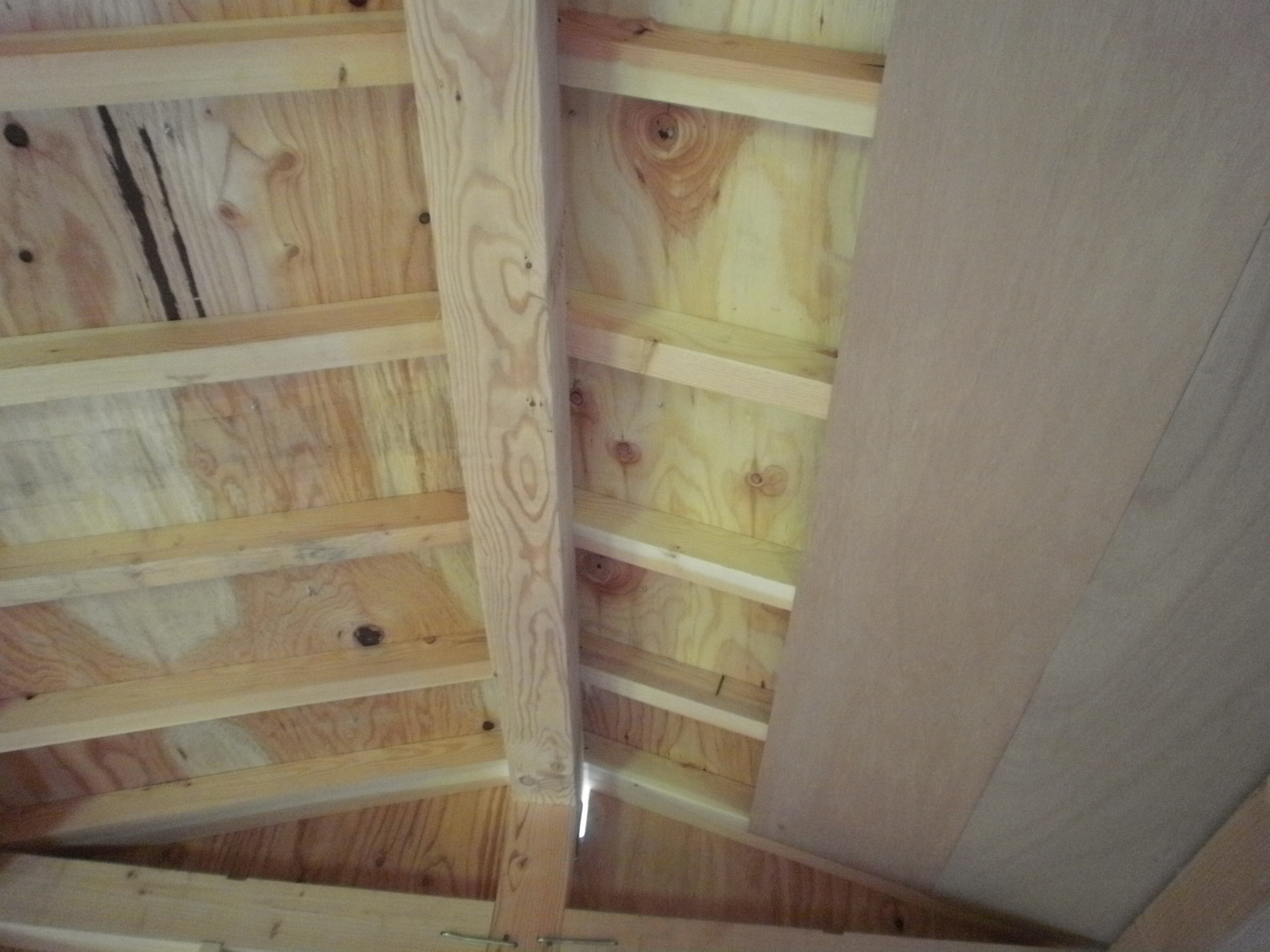 垂木(たるき)の下側に薄いベニアを貼って