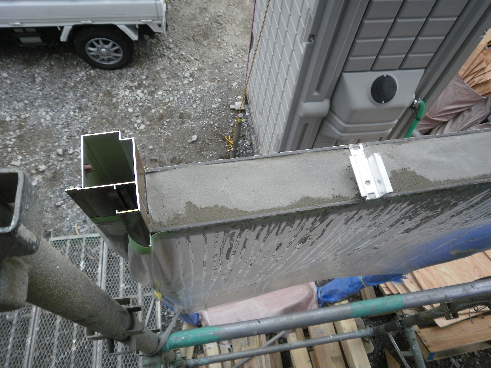 この部分にモルタルを詰めないと、靴擦りがカタカタしてしまう